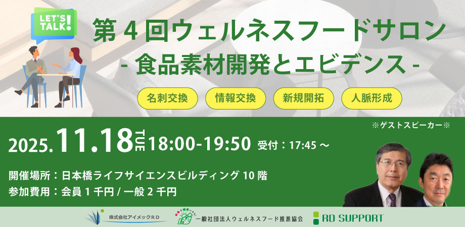 ウェルネスフード業界の知見交流と発展に資する交流会「ウェルネスフードサロン」第4回を開催いたします。